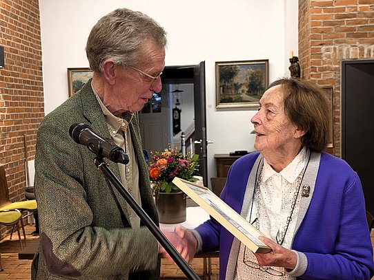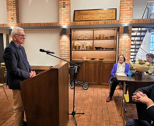 Laudator Lothar Schmalen zeigte die interessante Vita der Preisträgerin auf. Sie ist in Bad Iburg und Umgebung bekannt als Leiterin des Gymnasiums. Nach ihrer Pensionierung widmete sie ihre Energie und Zeit dem Aufbau eines Archivs beim Heimatverein Glane. In 23 Jahren ist eine beträchtliche gut sortierte Sammlung entstanden.
